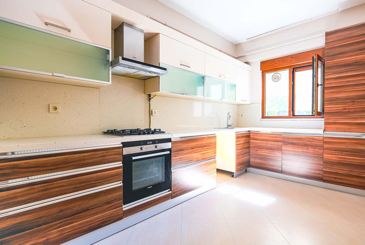 - Özel dekorasyonlu, bol dolaplı ve geniş mutfak (masa konulabilir)